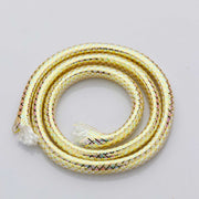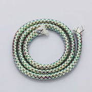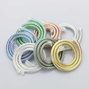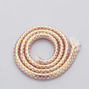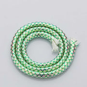 A fish-scale look from a Flashabou color braided over Pearl with a removable cotton strand core.