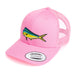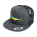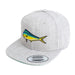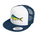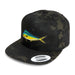 Our original Mahimahi embroidered patch heat-pressed onto a Yupoong Snapback Hat.