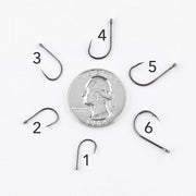 High carbon black nickel hooks available in sizes 1 to 6. Made in Japan.