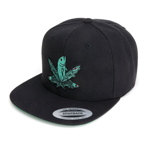 HFG - Green Fish Embroidered Black Snapback Flatbill Hat