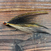 4in saltwater deceiver fly tied on a size 1/0 Mustad Tarpon hook. Fly weighs 1 gram.