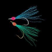 Tied on a Mustad Limerick size 2 hook with a glowing head and glow flash material.