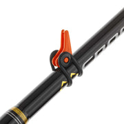 Easy to attach and reposition. Fold and click latch design snaps into upright position quickly with cam-lock action. Protects guides and reels from damage.