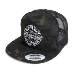 Our original HFG Oʻio (Bonefish) embroidered patch heat-pressed onto a Yupoong Snapback Hat.All hats are one-size-fits-all.