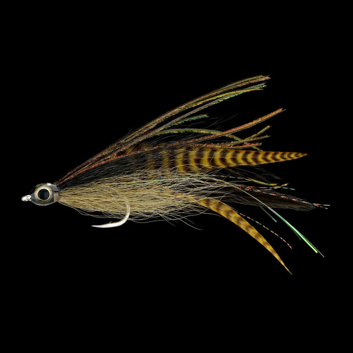 "Jumping Jack"- Olive and Black Bucktail and Saddle/Grizzly Hackles, Peacock Herl and Flash.