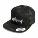 Our original 'Ō'io Bones (Bonefish) vinyl patch heat pressed onto a Yupoong Snapback Har.