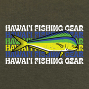 Our original Retro Hawaii Fishing Gear design, heat pressed on a Hanes Cotton T-Shirt.