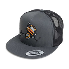 Our original UNFKN Reel Spinner embroidered patch heat-pressed onto a Yupoong Snapback Hat.All hats are one-size-fits-all.